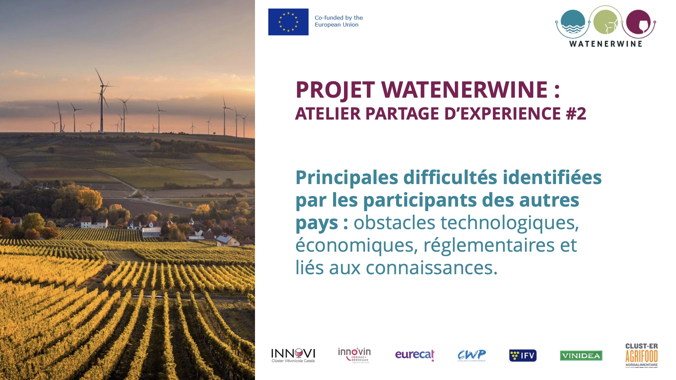 Groupe de travail #2 WATENERWINE : Maîtriser l’eau au chai : état des lieux, cadre réglementaire et innovations testées